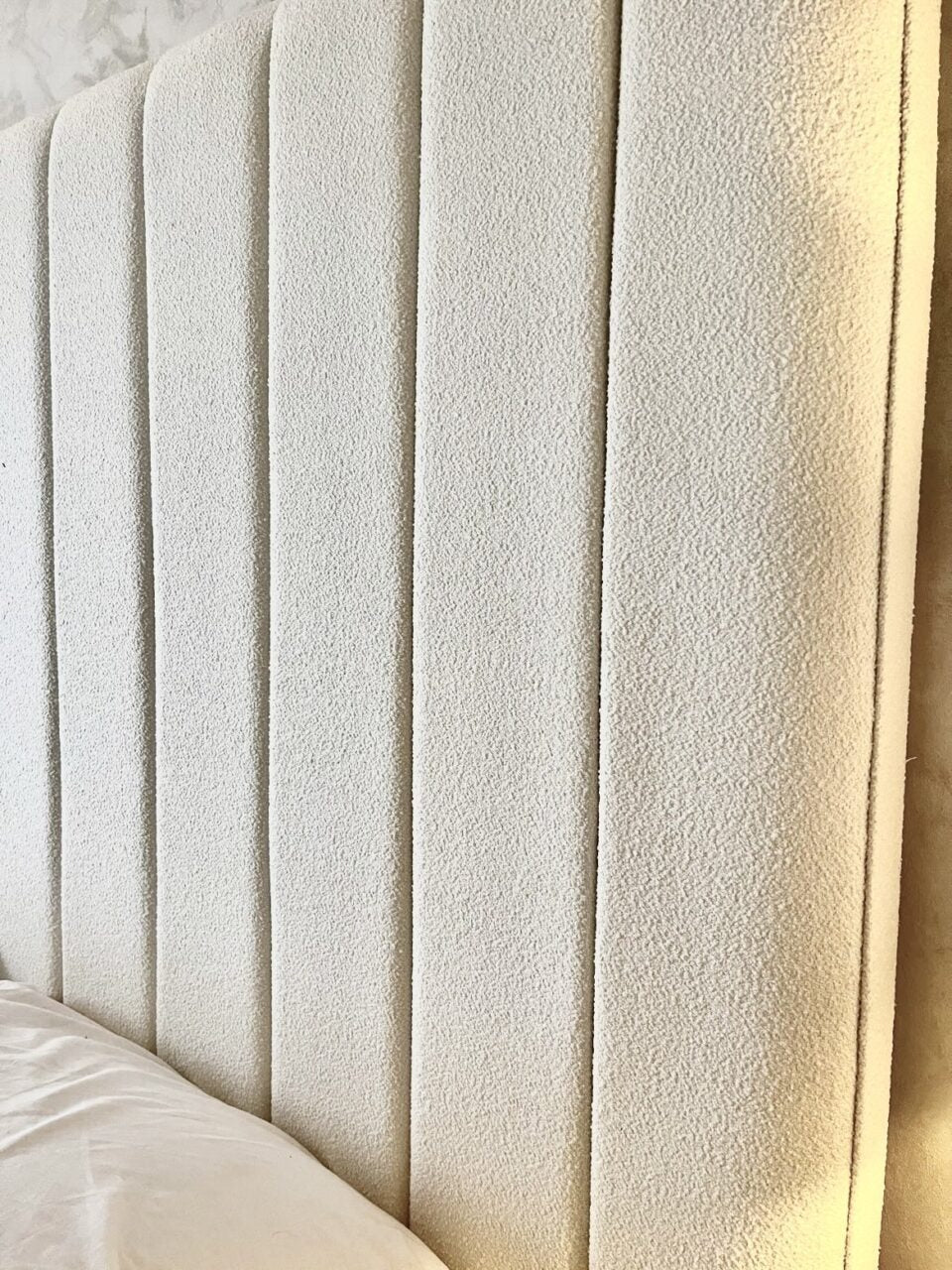 Experience the allure of boucle fabric, the reigning star of interior design. Stay ahead of the curve and indulge in a furniture piece that effortlessly captures the essence of contemporary luxury. Feel the gentle touch of this trending material against your skin, enveloping you in sheer opulence. Its creamy hue and teddy bear-like texture add a touch of serenity, creating a soothing ambiance that elevates any bedroom decor.